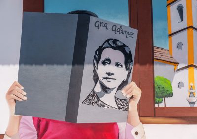 Ana Corazón. Artista jienense nacida en 1994, graduada en Bellas Artes por la Universidad de Granada, especializada en dibujo e instalación. Además, cuenta con dos másters: Producción Artística Interdisciplinar (UMA) y Máster en profesorado para estudios de secundaria en la especialidad de Dibujo (UJA). Desde entonces no ha parado de curiosear en el mundo del diseño, la cartelería, y el muralismo. Dibuja desde niña, su primer dibujo que conserva se titula “Autorretrato de mí” y lo hizo con 5 o 6 años, aunque nunca pensó en dedicarse al arte.