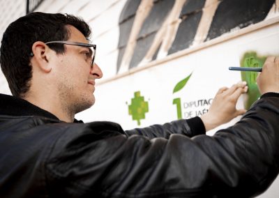 Javier Aldarias Montiel, artista plástico Baezano, pintor, escultor y muralista que ha expuesto y pintado a nivel nacional como internacional en ciudades como Baeza, Granada, Madrid, Amsterdam, Londres, Miami, México entre otras. Su estilo es el pop social, una nueva variante del pop tradicional caracterizado por la influencia del fotorrealismo y el realismo de Edward Hopper.