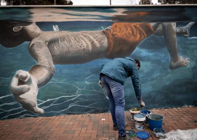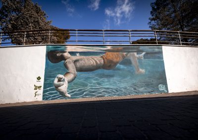 El mural tiene como elemento central el paraje natural de Amurjo y sus alrededores, una auténtica joya medioambiental que se ha convertido en los últimos años en el auténtico reclamo del municipio para atraer turismo de todo tipo. La propuesta artística en este grafiti muestra a una persona joven disfrutando junto a la piscina en un día habitual en la localidad. De esta forma se muestra este enclave tan importante para Orcera a la vez que se pone en valor el papel de la juventud, siempre presente en este municipio.