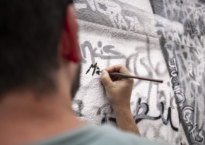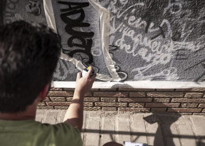 Alejandro Domínguez Rodríguez, ADORO, es un artista de Jaén con un estilo pictórico muy característico. En sus obras integra dibujo y palabras. A través de su experiencia en la pintura y tras años de trabajo ha ido adquiriendo un nuevo estilo que ha denominado con el término “frasismo”. Considera que, al mismo tiempo que pinta, puede expresar en palabras cualquier sentimiento, historia o idea, gracias a la escritura. Esto le ayuda a expresar y contar con mayor profundidad su trabajo y provoca también al espectador la necesidad de acercarse más a la obra para conocer todos los detalles.